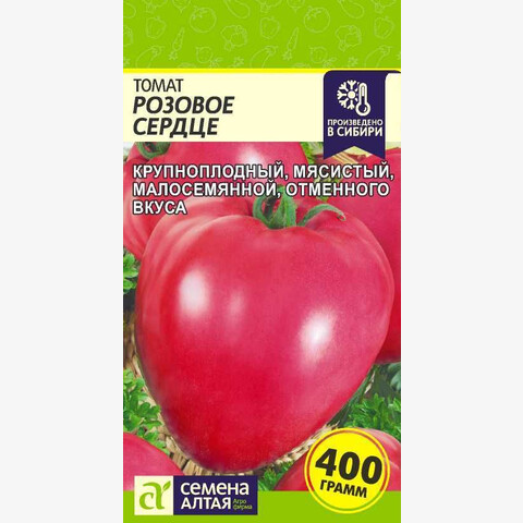 Среднеспелый салатный сорт с хорошей завязываемостью плодов. Растение индетерминантное, высотой до 2 м, требуется формирование, предпочтительнее для выращивания в теплице. Плоды сердцевидные, слаборебристые, 4-5-гнездные, розовые, 200-300 г, до 400 г, не растрескиваются. Мякоть сладкая, мясистая. Урожай 8-9 кг/кв.м. Место посадки: легкие плодородные нейтральные почвы. Выращивают после моркови, капусты, свеклы, бобовых и тыквенных культур Освещение: обильное, переносит легкое затенение Предпосевная подготовка: для стимулирования прорастания перед посевом семена томата замочить на 15 минут в 1% растворе марганцовки, затем промыть и подсушить Сроки посева: среднеспелые сорта высевают за 60-70 дней до высадки (март) Посев на рассаду: высевают на слегка утрамбованный грунт, мульчируют торфом или почвенным слоем 1 см, уплотняют, обильно поливают теплой водой, накрывают пленкой и ставят в теплое (около 25°С) место. После появления всходов пленку снимают, рассаду размещают в светлом месте. В течение 5-7 суток температуру поддерживают на уровне 15-16°С, затем повышают до 20-22°С Посев в грунт: не предусмотрено для большинства регионов Пикировка/перевалка: в фазе 1-2 настоящих листьев рассаду пикируют. В фазе 9-10 настоящих листьев высаживают в защищенный или открытый грунт с соблюдением посадочного расстояния 40х40 см Уход: индетерминантные томаты формируют в 1-2 стебля, удаляя пасынки. При достижении растениями верха теплицы или формировании 6-7 кистей основной стебель прищипывается. В период налива плодов рекомендуется произвести калийную подкормку Сбор урожая: собирают в течение сезона по мере созревания. Недозревшие плоды в фазе бланжевой и молочной спелости могут дозариваться не на растении