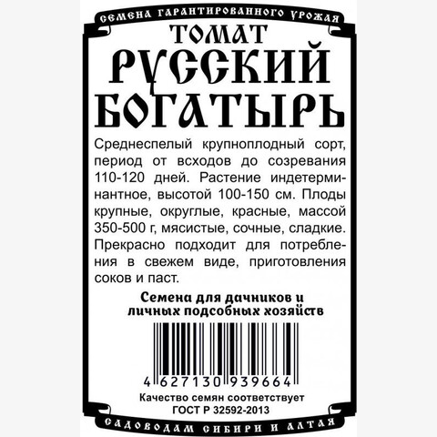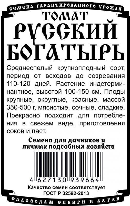 Среднеспелый крупноплодный сорт, период от всходов до созревания 110-120 дней. Растение индетерминантное, высотой 100-150см. Плоды крупные, округлые, красные, массой 350-500г, мясистые, сочные, сладкие. Прекрасно подходит для потребления в свежем виде, приготовления соков и паст.