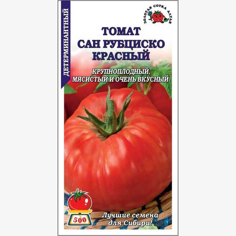 Урожайный крупноплодный сорт среднего срока созревания. От всходов до созревания около 120 дней. Куст детерминантный, высотой 90-100 см. Плоды плоскоокруглой формы, насыщенного красного цвета, массой до 500 г, мясистые и сахаристые, с прекрасными вкусовыми качествами. Сорт используется преимущественно в свежем виде для непосредственного потребления и приготовления салатов, подходит для засола и переработки на соки, кетчупы, пасты.