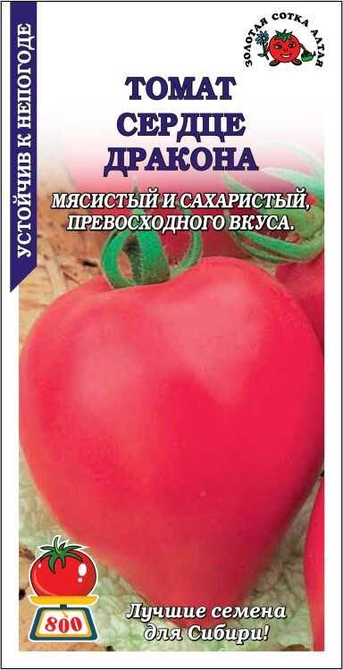 Сорт среднеспелый. От массовых всходов до начала созревания 115-125 дней. Растение высокорослое, требует подвязки и пасынкования. Плоды красивой сердцевидной формы, малиново-красной окраски, крупные, массой 300-500 г (до 800 г), мясистые, сахаристые, превосходного вкуса. Сорт прекрасно подходит для непосредственного потребления, приготовления салатов и соков, консервирования и переработки. Устойчив к неблагоприятным погодным условиям, плоды не растрескиваются.