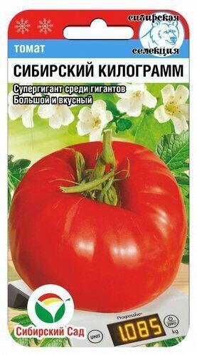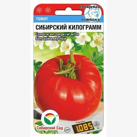 Супергигант среди гигантов Большой и вкусный Среднеспелый (116-120 дней) сорт супергигант сибирской селекции. Лидер по крупноплодности и урожайности среди томатов-великанов. Характеризуется устойчивостью к температурным колебаниям, комплексу основных заболеваний, прекрасным товарным видом и дегустационной оценкой вкуса плодов 5 баллов. При соблюдении агротехники не трудно получить томаты по 1000 и более граммов, состоящие из сплошной сладкой мякоти. Растение мощное, высотой 1,8-2м. В кисти формируется 3-4 крупных округлых плода, средней массой 600-800г. Томаты быстро набирают массу, вес первых плодов достигает более 1 ( до 1,5)кг . Насыщено-красные, без зеленого пятная у плодоножки, мясистые , не склонные к растрескиванию гиганты имеют отличный товарный вид для рыночных продаж. Сахаристая сладкая мякоть с минимальным количеством семян идеальна для приготовления салатов, соков, пюре и томатопродуктов. С каждого растения можно получить до 5 кг товарных плодов. Для увеличения урожайности и веса плодов требуются регулярные поливы и подкормка растений.