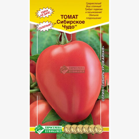 Среднеспелый сорт для выращивания в открытом грунте и пленочных теплицах. Период от всходов до начала созревания 110-115 дней. Растение индетерминантное, требует подвязки и формирования. Плод яйцевидный, гладкий, средней плотности. Масса 150-200 г. Окраска незрелого плода – зеленая с темно-зеленым пятном у плодоножки, зрелого – красная. Число гнезд более 4. Идеально подходит для приготовления соков и употребления в свежем виде. Отличается длительным периодом плодоношения, что позволяет собирать очень большие урожаи. Плоды томатов богаты витаминами, содержат фолиевую кислоту, каротин, провитамин Д и оказывают положительное воздействие на организм.