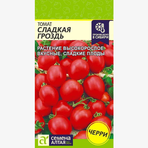 Среднеспелый урожайный сорт томата черри. Рекомендован для выращивания в теплице и открытом грунте. Растение индетерминантное, куст мощный, высотой 160-180 см. Требуется подвязка и пасынкование. На кусте формируется до 500 красных плодов овальной формы с маленьким носиком, массой 15-20 г, очень сладкого вкуса. Отлично подходят для цельноплодного консервирования, а также для свежего потребления. Достоинства сорта: устойчивость к основным болезням томатов, хорошая лежкость плодов, дружное созревание кистей, отличные вкусовые качества. Место посадки: легкие плодородные нейтральные почвы. Выращивают после моркови, капусты, свеклы, бобовых и тыквенных культур Освещение: обильное, переносит легкое затенение Предпосевная подготовка: для стимулирования прорастания перед посевом семена томата замочить на 15 минут в 1% растворе марганцовки, затем промыть и подсушить Сроки посева: среднеспелые сорта высевают за 60-70 дней до высадки (март) Посев на рассаду: высевают на слегка утрамбованный грунт, мульчируют торфом или почвенным слоем 1 см, уплотняют, обильно поливают теплой водой, накрывают пленкой и ставят в теплое (около 25°С) место. После появления всходов пленку снимают, рассаду размещают в светлом месте. В течение 5-7 суток температуру поддерживают на уровне 15-16°С, затем повышают до 20-22°С Посев в грунт: не предусмотрено для большинства регионов Пикировка/перевалка: в фазе 1-2 настоящих листьев рассаду пикируют. В фазе 9-10 настоящих листьев высаживают в защищенный или открытый грунт с соблюдением посадочного расстояния 40х40 см Уход: индетерминантные томаты формируют в 1-2 стебля, удаляя пасынки. При достижении растениями верха теплицы или формировании 6-7 кистей основной стебель прищипывается. В период налива плодов рекомендуется произвести калийную подкормку Сбор урожая: собирают в течение сезона по мере созревания. Недозревшие плоды в фазе бланжевой и молочной спелости могут дозариваться не на растении
