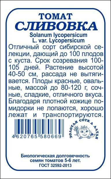 Отличный сорт сибирской селекции, дающий до 100 плодов с куста. Срок созревания 100-105 дней. Растение высотой40-50 см, рассада не вытягивается. Плоды красные, овальные, массой до 80-120 г, сочные, сладкие, отличного вкуса. Благодаря плотной кожице помидорки не лопаются, хорошо лежат и транспортируются.