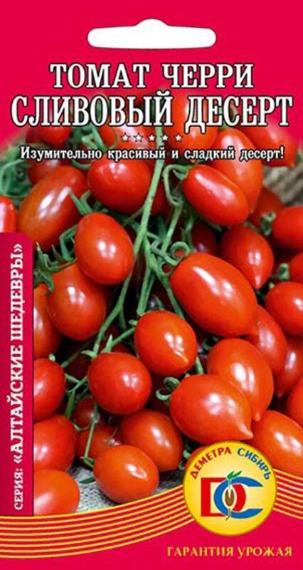 Изумительно красивый и сладкий десерт. Скороспелый (95-100 дней) высокорослый сорт, с продолжительным плодоношением, рекомендован для выращивания в пленочных теплицах и открытом грунте. Растения индетерминантные, высотой более 2 м. Плоды ровные, сливовидно-овальные, ярко-красные, массой 15-20 г, с высоким содержанием сахара, сухих веществ, витаминов и антиоксидантов, собраны в красивую кисть до 40 шт. Идеально подходит для цельноплодного консервирования, домашней кулинарии, приготовления и украшения салатов, для детского и диетического питания.