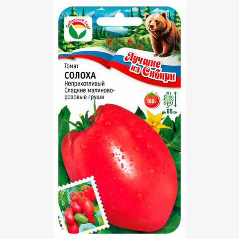 Среднеранний сорт для открытого грунта. Очень неприхотлив и удобен. Растение детерминантное высотой до 65 см, пасынкуется до первой кисти. Плоды грушевидные, малиново-розовые, массой 120-160 г, очень вкусные в свежем и консервированном виде. Период плодоношения длительный. Общая урожайность сорта достаточно высокая- до 7 кг с 1 кв. м. Посев на рассаду производят за 50-60 дней до высадки растений на постоянное место. Оптимальная постоянная температура прорастания семян 23-25 С. При высадке в грунт на 1 кв.м размещают 3-5 растений. Сорт хорошо реагирует на полив и подкормки комплексными минеральными удобрениями. Для ускорения процесса всхожести семян, оздоровления растений, улучшения завязываемости плодов рекомендуется использовать специально разработанные стимуляторы роста и развития растений.