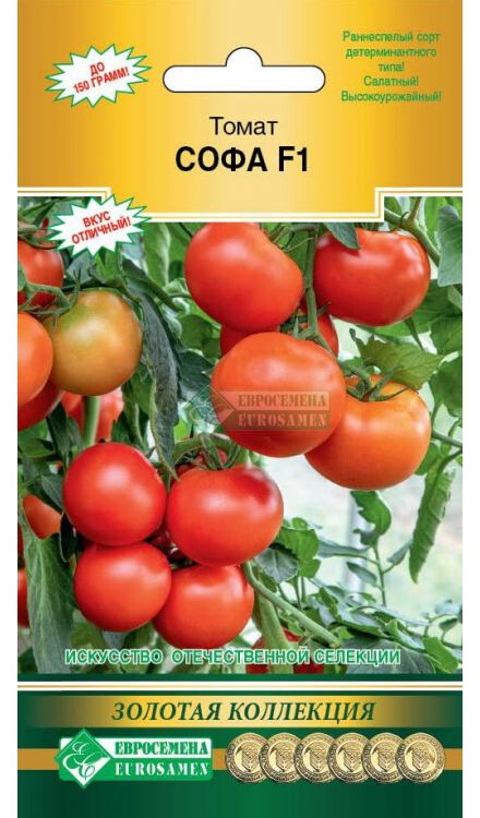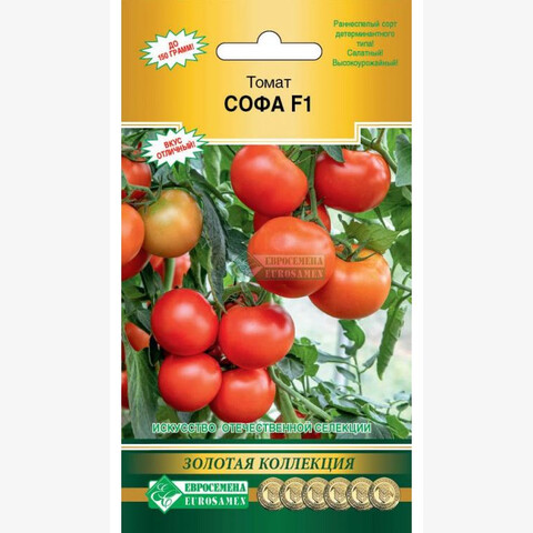 Трудно найти человека, который бы не любил томаты. Один только вид блестящих красных, оранжевых, желтых, двухцветных томатов вызывает аппетит и поднимает настроение. Помидор в переводе с итальянского языка означает золотое яблоко. С точки зрения ботаники томаты — это ягоды, но их относят к фруктам. Ведь по ботанической классификации сочные плоды с семенами внутри, развивающиеся из цветка, являются фруктами. Помидоры вкусны и полезны! Софа F1 - раннеспелый, салатный гибрид для выращивания в открытом грунте и под временными плёночными укрытиями в ЛПХ. Растение детерминантного типа. Лист средней длины, зелёной окраски. Соцветие простое. Плодоножка с сочленением. Плод округлой формы, средней плотности, ребристость слабая. Окраска незрелого плода светло-зелёная без пятна у плодоножки, зрелого - красная. Число гнезд - 3-4. Масса плода - 145 г. Вкус хороший. Урожайность товарных плодов в открытом грунте составила 10,7 кг/кв.м.