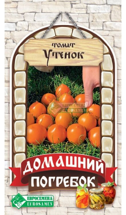 Заготовки на зиму - настоящее искусство, увлекательное и полезное, которое до сих пор остается самым актуальным у миллионов хозяек. Сделанные своими руками закрутки гораздо вкуснее магазинного ассортимента, ведь они адаптированы под вкусы своей семьи и являются желанными на любом столе. Серия Домашний Погребок - это отличный способ сохранить собранные овощи до глубокой зимы и даже до следующей весны. Она скомплектована из подходящих сортов и гибридов для домашнего консервирования, нужно просто закрутить их в банки, добавив различные ингредиенты для улучшения вкуса и продления сроков хранения. Утенок раннеспелый детерминантный сорт томата для цельноплодного консервирования. Куст штамбовый, не требующий пасынкования, плоды округлой формы, с носиком на вершине, массой 60 грамм, ярко-оранжевого цвета, мякоть сочная, вкусная. На 1 кисти формируется до 6-8 плодов.