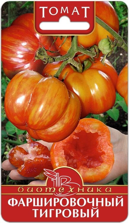 Индетерминантный, высота растения, при выращивании в защищенном грунте, высота не ограничена. Первая кисть формируется после восьмого листа, каждая последующая через 3-4 листа. Кисть простая, состоящая из 5-7 одинаковых плодов. Форма плода кубовидная, с четко выраженными долями, красного цвета с желто-оранжевыми полосами, массой 120-130 г. Плоды в кисти созревают практически одновременно, что позволяет делать сбор кистями.