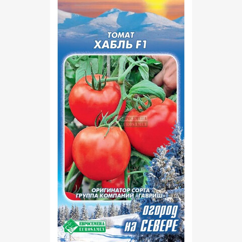 Ни у кого не вызывает сомнений, что свежие овощи - это вкусно и полезно. Тем людям, кто живет на юге или в средней полосе России не составляет особого труда в выборе семян для посева, а как же быть северянам! Навсегда распроститься с мечтой о свежих овощах со своего огорода? Ни в коем случае! Огород на Севере - серия семян, разработанная для выращивания овощей в прохладных климатических условиях, включающая раннеспелые сорта и гибриды, способные давать хороший урожай в условиях короткого лета. Хабль- детерминантный скороспелый ( 94-97 дней от всходов до созревания) гибрид томата салатного и универсального назначения для выращивания на раннюю продукцию в открытом грунте и пленочных теплицах. Плоды привлекательного, насыщенно-красного цвета, массой до 300 грамм с высоким содержанием сахаров и ликопина.