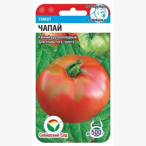 Ранний крупноплодный детерминантный сорт для открытого грунта и пленочных теплиц. Растение высотой 0,7- 1м в зависимости от условий выращивания. Плоды огненно-красные, плоско-округлой формы, мясистые, массой 300-500 г. Сорт отличается исключительной выровненностью плодов, на растении практически не встречается уродливых плодов. В сравнении с другими крупноплодными сортами, Чапай, одним из первых вступает в фазу созревания плодов. Плоды вкусные, сахаристые, хороши в свежем и переработанном виде. При высадке в грунт на 1кв. м размещают 3-4 растения.