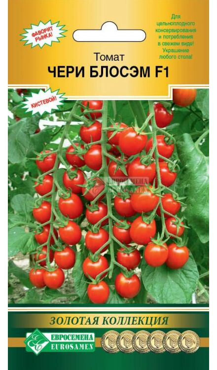 Добро пожаловать в мир высококачественных профессиональных семян Трудно найти человека, который бы не любил томаты. Один только вид блестящих красных, оранжевых, желтых, двухцветных томатов вызывает аппетит и поднимает настроение. Помидор в переводе с итальянского языка означает золотое яблоко. С точки зрения ботаники томаты — это ягоды, но их относят к фруктам. Ведь по ботанической классификации сочные плоды с семенами внутри, развивающиеся из цветка, являются фруктами. Помидоры вкусны и полезны! Чери Блосэм F1 -раннеспелый гибрид , индетерминантный для выращивания в открытом грунте (на шпалере) и защищенном. Плод округлый, красный, массой 20-25 г. Вкусовые качества отличные. На одной кисти созревает в среднем 20 плодов. Устойчивость к вирусу табачной мозаики и к фитофторозу хорошая. Рекомендуется для свежего потребления и консервирования. Чудесное украшение любого стола. Плоды томатов богаты витаминами, содержат фолиевую кислоту, каротин, провитамин Д и оказывают положительное воздействие на организм.