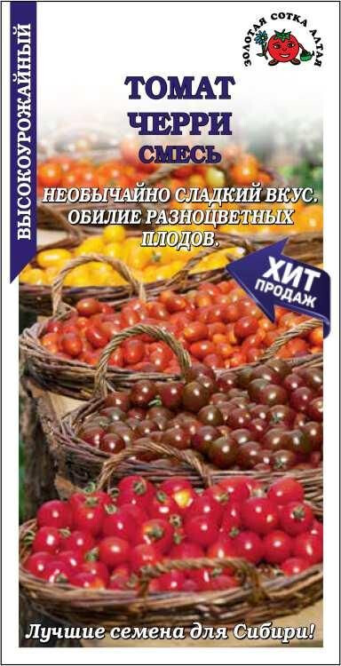 Смесь высокоурожайных сортов томата-черри, рекомендованных для выращивания в открытом грунте, теплицах и в качестве контейнерного растения на балконах. Кусты мощные, индетерминантные, требуют подвязки к кольям или шпалере, пасынкования и прищипки. Плоды округлой формы, массой 15-20 г, плотные, с сочной и мясистой мякотью, благодаря повышенному содержанию сахара обладают по-настоящему сладким вкусом. Сорта используются в кулинарии, для непосредственного потребления и приготовления салатов, украшения блюд и цельноплодного консервирования, в том числе ассорти. Прекрасно подходят для любимой многими закуски канапе.