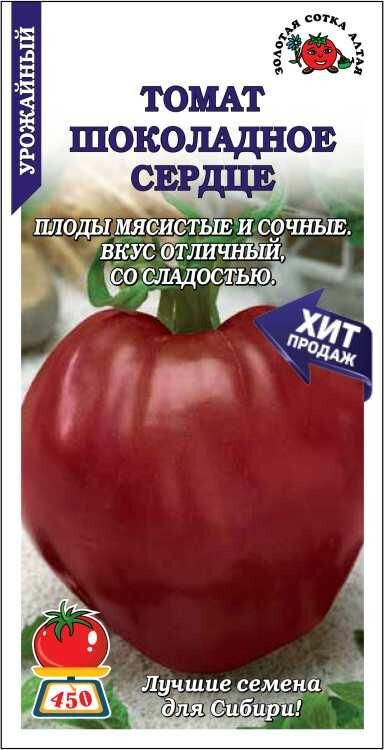 Среднепоздний сорт для выращивания в открытом грунте и под пленочными укрытиями. Растение индетерминантное, сильное и крепкое, требует подвязки и формирования. Плоды красивого и необычного красно-коричневого цвета, сердцевидной формы, массой 250-300 г (до 450 г), сочные и мясистые, отличного вкуса со сладостью. Используют в свежем виде для непосредственного потребления и приготовления салатов, подходит для засола и переработки.