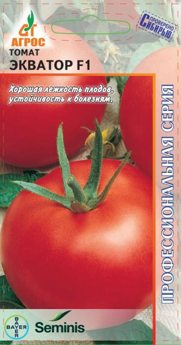 Среднеранний детерминантный гибрид. Растение среднего размера, плоды округлой формы, средний вес плодов 150-180 г, плотные, отличаются хорошей лежкостью, при созревании приобретают привлекательную красную окраску. Помимо всех вышеперечисленных преимуществ, Экватор F1 к тому же обладает высокой устойчивостью к болезням.