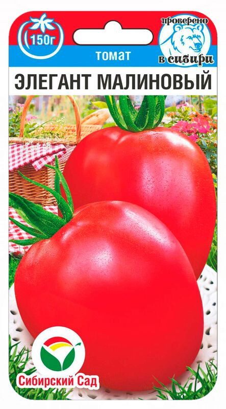 Среднеспелый (110-115 дней) сорт сибирской селекции АФ “Сибирский сад” салатно-консервного направления. Отличается элегантностью формы и “вкусной” насыщенной малиновой окраской плодов. Получил высокую дегустационную оценку вкуса 5 баллов. Сорт выращен и адаптирован к климатическим условиям Сибири, не требует усиленного ухода, в открытом грунте может выращиваться без пасынкования и подвязки. Может выращиваться в открытом защищенном и грунте во всех регионах РФ. Растение компактное, крепкое, среднеоблиственное, высотой 0,7-1,4м в зависимости от условия выращивания. Формирует завязи из 4 и более плодов. Томаты красивой гладко овальной формы, насыщенно розового-малинового цвета, глянцевые, массой 100-150г. Стенка толстая, мякоть плотная, настоящего сибирского вкуса, сбалансированного по содержанию сахаров и кислот. Содержание сухого вещества 6%, сахаров 4%. Направление использования плодов универсальное: для свежего потребления, консервации, засолов. Урожайность до 8кг/м2.