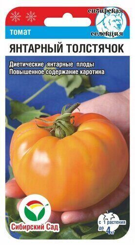 Диетические янтарные плоды Повышенное содержание каротина Среднеранний детерминантный сорт сибирской селекции Отличительная особенность сорта – ярко выраженные диетические свойства плодов. Зрелые томаты густого янтарного цвета, содержат повышенное количество бета-каротина и сахаров. Низкое содержание кислот в томатах этого сорта актуально для диетического питания людей с заболеваниями желудочно-кишечного тракта. Растение высотой до 1,5 м в теплице, до 1м в открытом грунте. Кисти завязываются часто – через 2 листа. В каждой кисти зреет по 4-5 крупных плодов, масса отдельных из них доходит до 500г. Урожайность высокая и составляет до 5кг с растения.