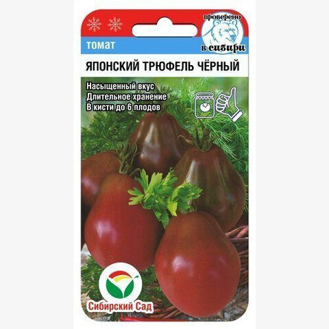Растение штамбового типа, высотой 120-150гр, формирует 4-5 кистей с 5-6 плодами. Томаты очень красивой грушевидной формы, с легкой продольной ребристостью, массой 100-160гр., коричнево-шоколадные, плотные. Внешне напоминают трюфель. Вкус плодов богатый и насыщенный, с преобладанием сладости.