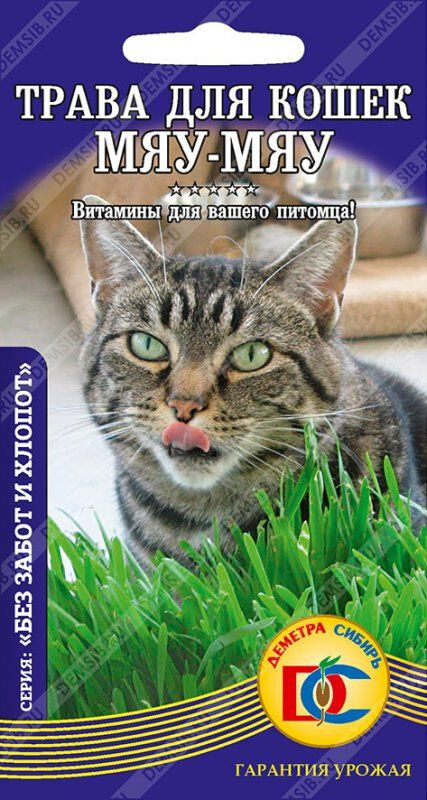 Отличная добавка к корму любимых питомцев! Быстрорастущая зелень, содержит большое количество витаминов и веществ, необходимых для полноценного рациона и поддержания здоровья. Траву можно выращивать в течение всего года в домашних условиях на любом субстрате. Во время прорастания семян почву следует поддерживать влажной. Оптимальная температура 18°С. Время прорастания семян зависит от освещенности и составляет около 8 дней. Ящик с ростками следует держать на светлом месте. При достижении растениями высоты 8-10 см, Ваша кошка может кушать самые полезные витамины прямо из ящика.