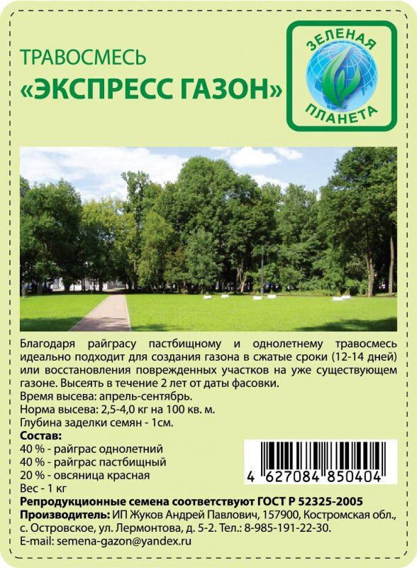 • Состав: 40% - Рейграс однолетний, 40% - Рейграс пастбищный, 20% - Овсяница красная
