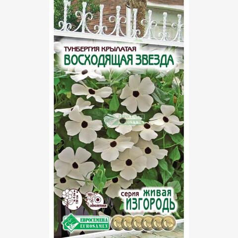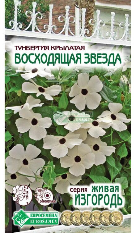 Тунбергия крылатая в большинстве стран мира известна под названием Черноглазая Сюзанна, это название она получила за темный глазок в центре цветка. Происходит растение из тропиков Восточной Африки, но легко расселилось и в другие части континента, поэтому место происхождения считается предположительным. Название растение получило в 1780 году как дань уважения шведскому ботанику Тунбергу. Культура вьющаяся, теплолюбивая, с одиночными воронковидными цветками, появляющимися на растении с июля по сентябрь (в южных регионах - с июня по октябрь). Одно из преимуществ этого растения в том, что оно на удивление быстро наращивает зеленую массу, беспрерывно и обильно цветет. Если есть подходящая опора, то растение растет вверх, может расти и вниз. Второй вариант отлично подходит для тех случаев, когда растение выращивается в подвесной корзинке. Ценится за неприхотливость и декоративность, очень уж она хороша!