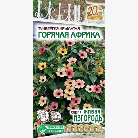Тунбергия крылатая в большинстве стран мира известна под названием Черноглазая Сюзанна, это название она получила за темный глазок в центре цветка. Происходит растение из тропиков Восточной Африки, но легко расселилось и в другие части континента, поэтому место происхождения считается предположительным. Название растение получило в 1780 году как дань уважения шведскому ботанику Тунбергу. Культура вьющаяся, теплолюбивая, с одиночными воронковидными цветками в окрасках африканского заката, появляющимися на растении с июля по сентябрь (в южных регионах - с июня по октябрь). Одно из преимуществ этого растения в том, что оно на удивление быстро наращивает зеленую массу, беспрерывно и обильно цветет. Если есть подходящая опора, то растение растет вверх, может расти и вниз. Второй вариант отлично подходит для тех случаев, когда растение выращивается в подвесной корзинке. Ценится за неприхотливость и декоративность, очень уж она хороша!