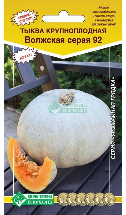 Тыква – полезный для здоровья продукт питания, который по праву можно назвать природным поливитамином. Все вещества, входящие в состав яркой мякоти, не теряют своей пользы даже в процессе термической обработки. Еще в былые времена, когда такие сладости, как мороженое и шоколадные конфеты, были редкостью, кусочек запеченной сладкой тыквы считался настоящим лакомством. Волжская-среднеспелый сорт, период от полных всходов до сбора плодов 102-121 день. Плоды слабо - или средне сплюснутые, слабо сегментированные или гладкие, массой 6,3-9,0 кг. Окраска плодов светло-серая и зеленовато-серая, без рисунка. Кора упругая, кожистая. Мякоть желтой и кремовой окраски, толщиной 4,0-4,5 см, средней плотности и сладости. Вкусовые качества хорошие. Содержание сухого вещества 10,7-11,5%, сумма сахаров 5,2-7,0%, каротина 2,9-5,5 мг%. Ценность сорта: хорошая транспортабельность и лежкость плодов, засухоустойчивость. Рекомендуется для столовых целей.