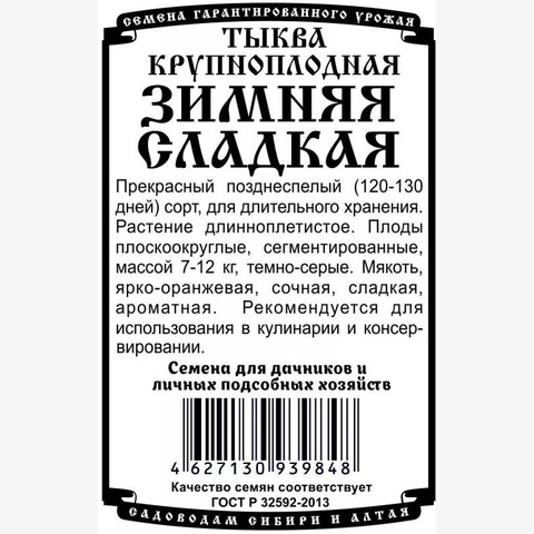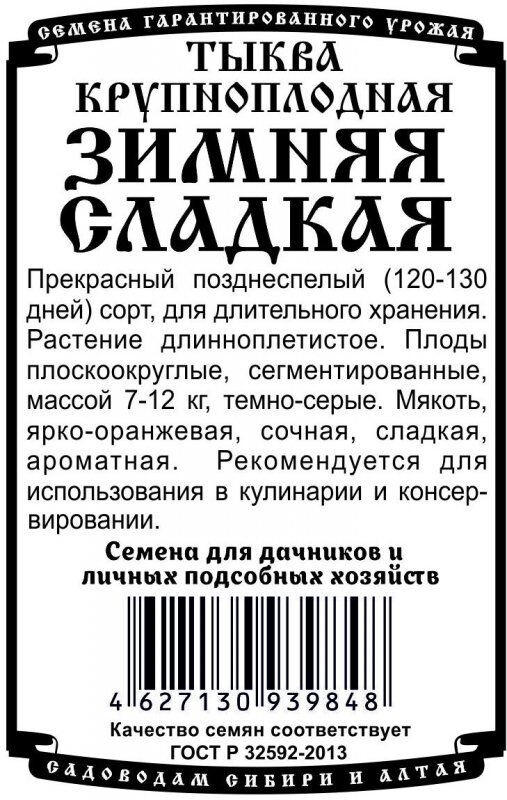 Тыква Кладовая Здоровья/ Семена Алтая 1гр