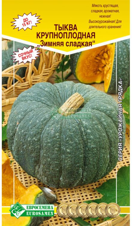 Позднеспелый сорт крупноплодной тыквы со сладкими плодами для длительного хранения. Период созревания наступает на 120-130 день после появления полных всходов. Плоды плоскоокруглые, сегментированные, ребристые, массой 7-12 кг. Окраска фона темно-серая с рисунком в виде мелких светло-серых пятен различной интенсивности. Мякоть сладкая, сочная. Сорт обладает высокой транспортабельностью, лежкостью и устойчивостью к болезням. Выращивается как рассадным способом, так и прямым посевом в грунт. Хорошо отзывается на внесение органических удобрений. Тыква является наиболее богатым источником каротина. Используется в выпечке, для изготовления пюре и соков.