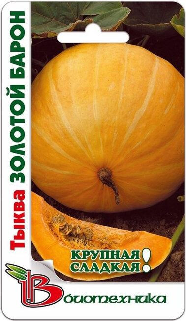 Очень вкусная, золотисто-жёлтая тыква. Может употребляться в сыром виде. Плод храниться до следующей весны без потери качества. Сорт среднеспелый, созревание на 98-110-й день. Плод округлый, гладкий, золотисто-жёлтого цвета, мякоть, ярко-жёлтая, плотная. Средняя масса плода 8-10 кг.