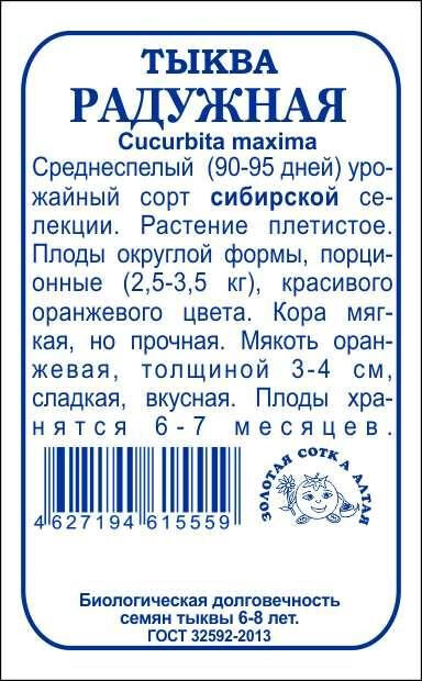 Тыква Радужная б/п /Сотка/ 2г/ среднесп. крупнопл. 2,5-3,5кг/*960