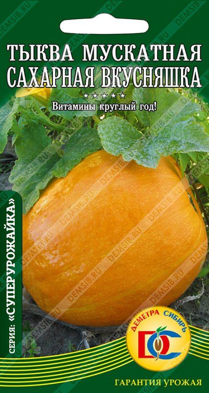 Позднеспелый (124-130 дней), высокоурожайный сорт. Растение длинноплетистое, средней мощности. Плоды удлиненно-овальные, широкие, сегментированные, с тонкой корой, массой 5-7 кг. Окраска поверхности при созревании буро-оранжевая с розовым оттенком. Мякоть ярко-оранжевая, почти красная, толщиной 5-10 см, хрустящая, сахарно-сладкая, великолепного вкуса и аромата. Культура богата витаминами и микроэлементами, прекрасно подходит для детского питания. Плоды прекрасно хранятся длительное время.