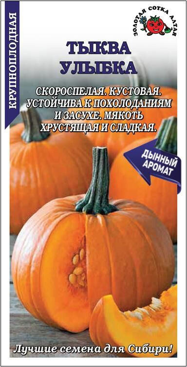 Сорт скороспелый, порционный, транспортабельный, дает хороший урожай даже при недостатке тепла. От всходов до уборки около 85 дней. Растение кустовое, образует до 6 коротких побегов, главная плеть длиной до 1 м. На растении формируется до 7-10 округлых плодов массой 0,7-1,0 кг. Поверхность слабосегментированная, оранжевая со слабыми белыми полосами. Кора средней толщины, кожистая. Мякоть ярко-оранжевая, с дынным ароматом, хрустящая и сладкая.