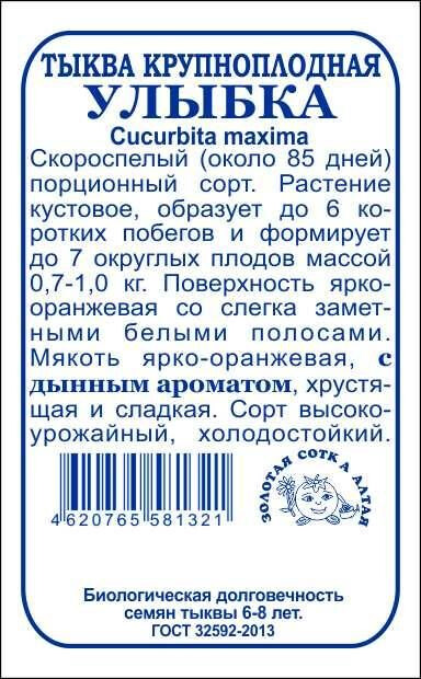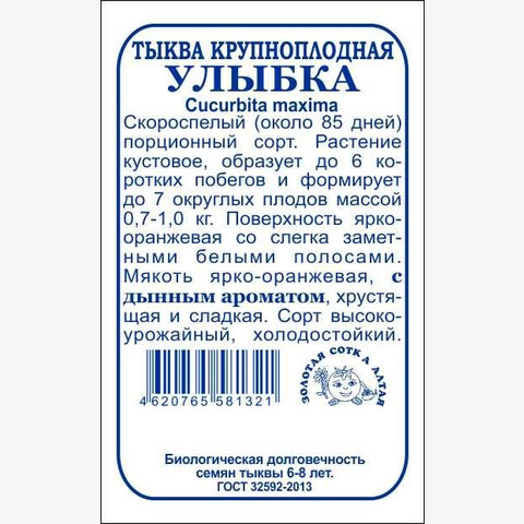 Тыква Улыбка б/п /Сотка/ 2 г/ скоросп. / куст.0,7-1,0 кг. дын.аром