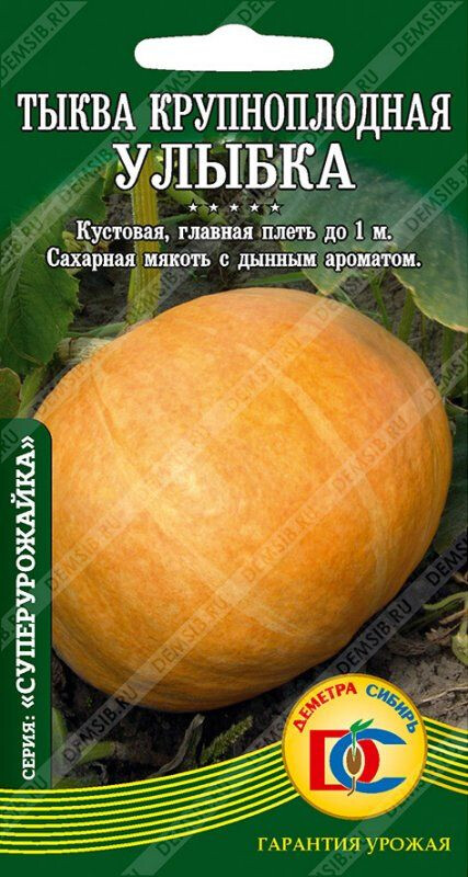 Раннеспелый (85-90 дней до уборки) сорт, отличается повышенной холодостойкостью. Растение кустовое (главная плеть до 1 м), образует до 6 побегов. Плоды шаровидные, слабосплюснутые, гладкие, ярко-оранжевого цвета, массой 0,7-1,0 кг. Мякоть плотная, ярко-оранжевая, средней толщины, сладкая, с дынным ароматом. Сорт рекомендован для свежего потребления, переработки и длительного хранения.