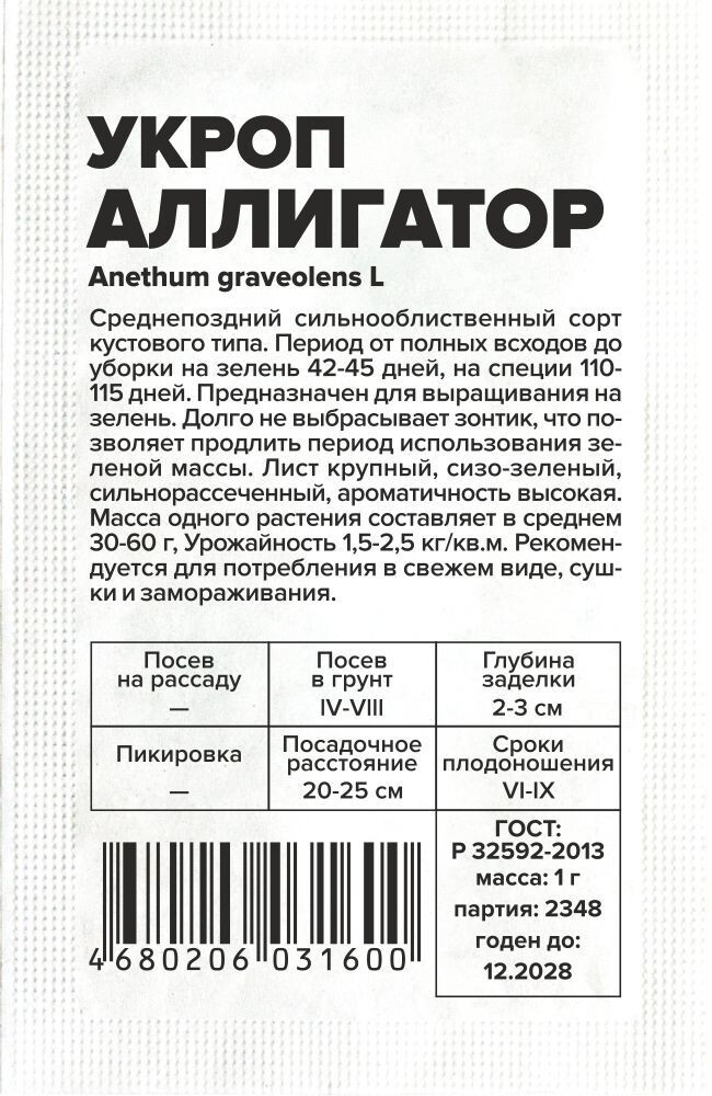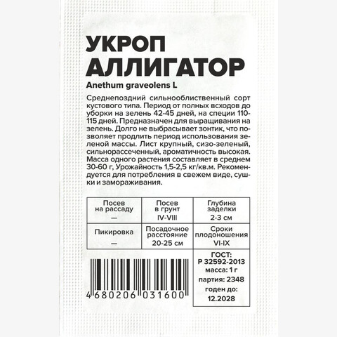Среднепоздний сильнооблиственный сорт кустового типа. Период от полных всходов до уборки на зелень 42-45 дней, на специи 110-115 дней. Предназначен для выращивания на зелень. Долго не выбрасывает зонтик, что позволяет продлить период использования зеленой массы. Лист крупный, сизо-зеленый, сильнорассеченный, ароматичность высокая. Масса одного растения составляет в среднем 30-60 г, Урожайность 1,5-2,5 кг/кв.м. Рекомендуется для потребления в свежем виде, сушки и замораживания. Место посадки: предпочитает легкосуглинистые или супесчаные почвы. В качестве предшественника подходят любые пропашные культуры, огурцы, капуста, кроме растений семейства сельдерейные Освещение: обильное, выносит затенение Предпосевная подготовка: не требуется, для более ранних и дружных всходов перед посевом можно замочить семена на 10-15 минут в воде температурой +50°С Сроки посева: высевают в несколько сроков с интервалом 15-20 дней с середины апреля (в зависимости от региона, когда почва прогреется до +10...12°С) по август Посев на рассаду: не предусмотрен Посев в грунт: сеют рядками, оставляя междурядья 20-25 см, сплошным способом или в лунки для получения пучков. Семена заделывают на глубину 0,5-1 см. Для получения весной более ранней зелени можно производить подзимний посев сухим способом Пикировка/перевалка: не предусмотрена Уход: заключается в прополке и поливе Сбор урожая: проводится выборочно, по мере отрастания зеленой массы. Срок хранения при +1°С - две недели