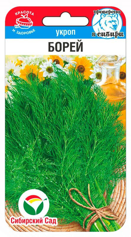 Позднеспелый кустовой обильнолиственный нежелтеющий сорт. Период от всходов до уборки на зелень — 40–55 дней, на специи — 62–104 дня. Отличается высокой устойчивостью к стеблеванию, долго сохраняет обильную высокоароматичную зеленую массу. Рекомендуется для выращивания в открытом грунте во всех регионах РФ. Растение крупное, быстрорастущее. Розетка полуприподнятая, высотой 28–36 см, с 8–11 листьями. Лист крупный, зелёный с сизоватым оттенком, очень душистый. Сорт идеально подходит для использования на зелень, сушки и заморозки. Урожайность зелени до 4.2 кг/м 2, на специи — до 4.5 кг/м 2. Укроп сеют под зиму или ранней весной. Практикуют многократные весенне-летние посевы с интервалом 10–12 дней. Выращивается прямым посевом семян в грунт рядами, с расстоянием между растениями 6-8 см, загущенные посевы необходимо прореживать. Уход заключается в равномерном поливе и рыхлении почвы.