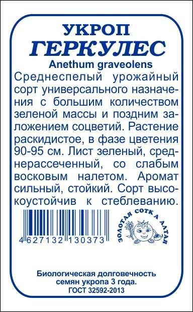 Среднеспелый урожайный сорт универсального назначения с большим количеством зеленой массы и поздним заложением соцветий. Растение раскидистое, в фазе цветения 90-95 см. Лист зеленый, среднерассеченный, со слабым восковым налетом. Аромат сильный, стойкий. Сорт высокоустойчив к стеблеванию.