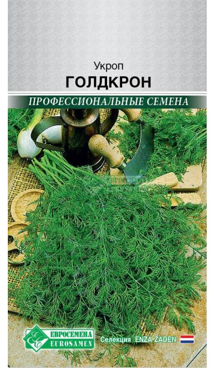 Укроп это одна из тех универсальных трав, которые хороши для самых разных блюд. Почти любой суп вкуснее с укропом, обычная яичница становится изысканной, а банальное картофельное пюре - пикантным. Голдкрон-тетраплоидный сорт, что обеспечивает высокий потенциал урожайности и устойчивость к стрелкованию, даже в жарких условиях. Для круглогодичного выращивания в открытом грунте и защищенном. Позднеспелый (28-39 дней от всходов до уборки зелени, 58-72 дня от всходов до цветения) урожайный сорт. Растение компактное, средней высоты. Стебель зеленый, длинный, среднего диаметра, с наличием антоциана и со слабым восковым налетом. Лист среднего размера, зеленый, треугольный, средне рассеченный, со слабым восковым налетом. Центральный зонтик плоский, среднего диаметра, со средним количеством лучей. Масса одного растения при уборке на зелень 75-80 г, на специи - 110-120 г. Ароматичность высокая. Урожайность на зелень 2,9-3,4 кг/м2, на специи - 4,6-5,1 кг/м2.