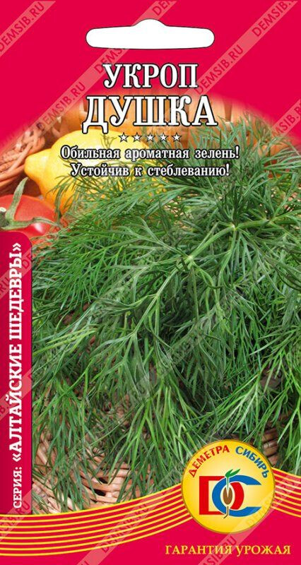 Урожайный, с сильным устойчивым ароматом, среднеспелый (30-40 дней) сорт универсального назначения с большим количеством зеленой массы. Растения ветвистые, хорошо облиственные, в фазе цветения 100-130 см см. Листья зеленые, нежные, среднерассеченные, со слабым восковым налетом. Высоких товарных качеств. Сорт долго не переходит к стеблеванию и характеризуется поздним заложением соцветий. Используют в свежем виде и для консервирования.