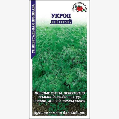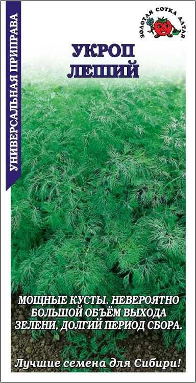 Уникальный по объёму выхода зеленой массы сорт, поздно образующий зонтики, а в некоторых регионах зонтики и вовсе практически не образуются. От всходов до уборки на зелень 40-45 дней, длительность периода уборки зелени при весеннем посеве в открытом грунте более двух месяцев. Растение кустовое, мощное, высотой 1,5-1,6 м (в теплице до 3,5 м), густооблиственное. Листья обладают очень высокой ароматичностью. Используют в кулинарии, при засолке и в качестве лекарственного растения, сушат и замораживают.