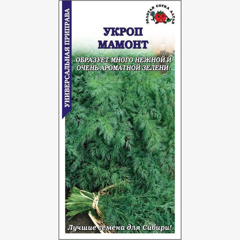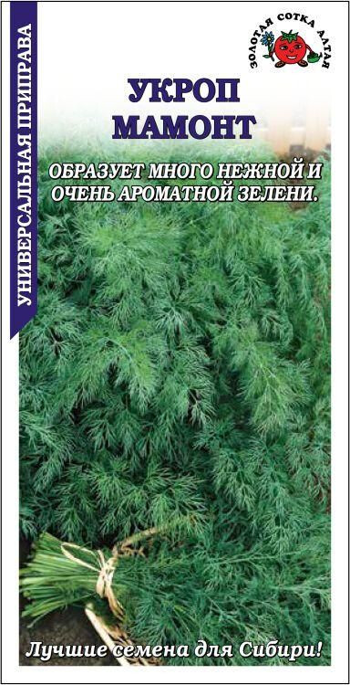 Среднеспелый высокоурожайный сорт. От всходов до сбора зелени 40-50 дней, на специи собирают через 80-90 дней. Растение сильно-облиственное, с поздним заложением соцветий. Листья серовато-зеленые, с сильным восковым налетом, крупные, нежные и очень ароматные. Укроп широко применяется в кулинарии, при консервировании и в качестве лекарственного растения, содержит фитонциды и при засолке овощей не только придает им специфический вкус, но и предохраняет от плесени и порчи.