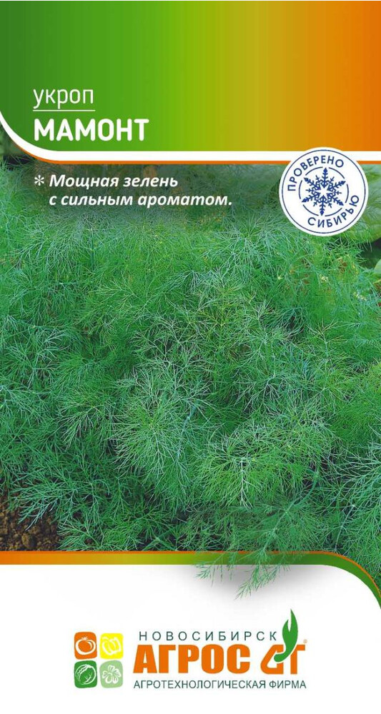 Среднеспелый сорт. Растение развивает мощную зелень с сильным ароматом. Розетка листьев мощная, полуприподнятая. Листья зелёные, сочные, ароматные. Созревание дружное. Урожайность зелёной массы 1,8-3 кг с м². Выращивается прямым разреженным посевом семян в грунт. Укроп используется в основном на специи, а также для получения зелени в течение лета.