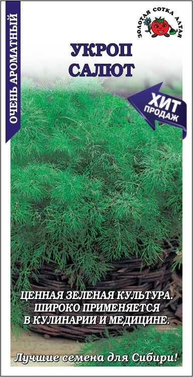 Сорт позднеспелый, высокопродуктивный. От всходов до сбора зелени 50-60 дней, на специи собирают через 80-90 дней. Растение кустовое, компактное, невысокое. Листья крупные, темно-зеленые с восковым налетом, нежные, с сильным пряным ароматом, долго сохраняют свежесть и быстро отрастают. Укроп содержит фитонциды и при засолке предохраняет овощи от плесени и порчи. Используется в свежем и сушеном виде как приправа к горячим и холодным блюдам, применяется в народной и официальной медицине.