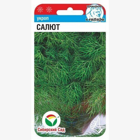 Первый отечественный кустовой сорт, относящийся к типу нежелтеющих укропов. Позднеспелый, период от всходов до уборки на зелень 60 дней. Формирует мощный облиственный куст высотой 70 см. В розетке 20-30 вертикально расположенных листьев. Листья крупные, длинночерешковые, длиной до 30 см, шириной 30-36 см, зеленые, с восковым налетом, нежные и очень ароматные. Зелень можно убирать многократно с весны до середины августа, сначала благодаря прореживанию, потом- срезке крупных розеток и боковых побегов. Масса одного растения 71-91 г, урожайность зелени с 1 кв. м составляет 2,8 кг. Сорт практически не стрелкуется, в средней полосе не зацветает, поэтому не дает семян. Возможно выращивание рассадным способом (20-ти дневной рассадой) Расстояние при посеве в грунт 1-2см. При высоте 6 см рекомендуется проредить посадки до 100-120 штук на кв. м, затем проредить до густоты 30-40 растений на кв. м, с междурядьем 40 см. Для формирования полноценного куста между растениями должно быть расстояние 15-20 см.