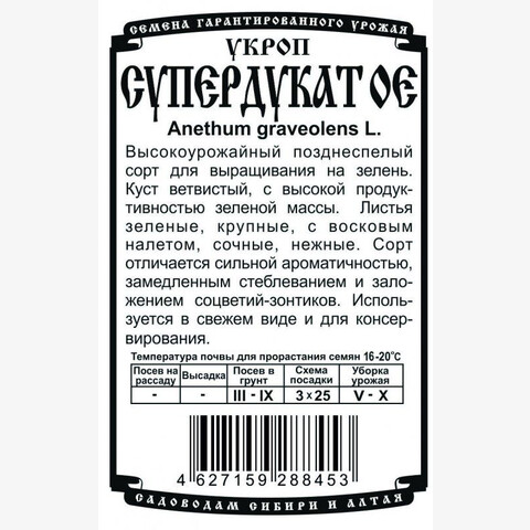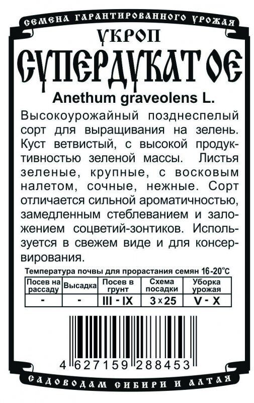 Высокоурожайный позднеспелый сорт для выращивания на зелень. Куст ветвистый, с высокой продуктивностью зеленой массы. Листья зеленые, крупные, с восковым налетом, сочные, нежные. Сорт отличается сильной ароматичностью, замедленным стеблеванием и заложением соцветий. Используется в свежем виде и для консервирования.