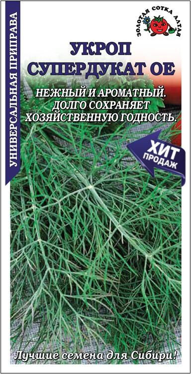• Позднеспелый сорт с замедленным образованием стебля и соцветий. Листья крупные, нежные, сочные, очень ароматные, длительное время сохраняют хозяйственную годность. Зелень используют как приправу к горячим и холодным блюдам, солят и сушат; семена — для отдушки кондитерских изделий, соцветия и стебли добавляют в маринады, соленья и при квашении капусты. Укроп содержит фитонциды и при засолке овощей не только придает им специфический вкус, но и предохраняет от плесени и порчи.