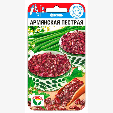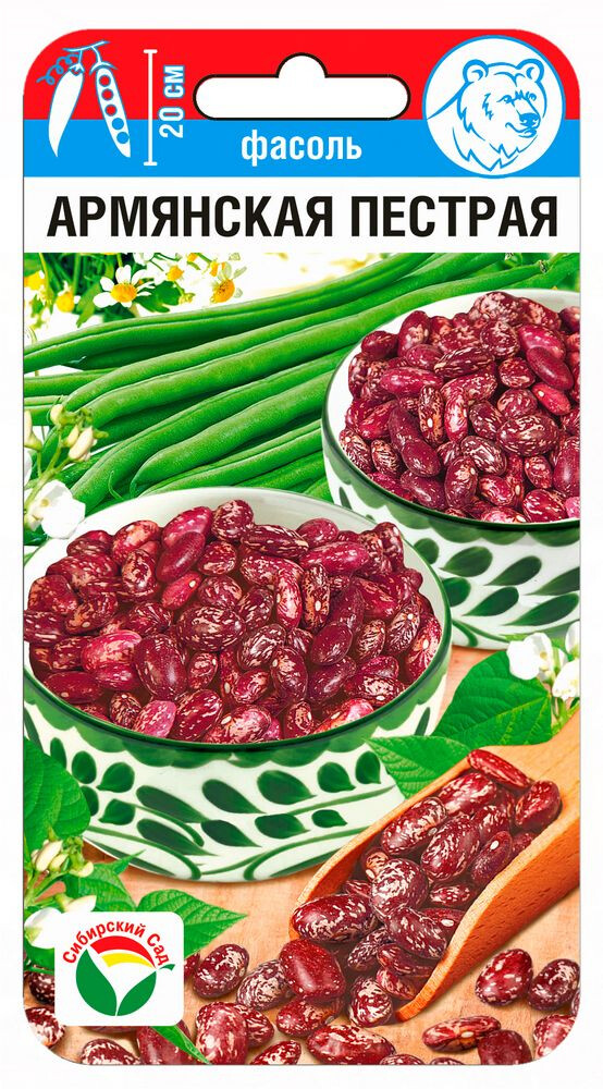 Вкусный и урожайный сорт зерновой фасоли. Яркие красивые зерна декоративно выглядят даже после кулинарной обработки. Среднеспелый (80-90 дней), Кустового типа. Неприхотлив и устойчив к болезням, хорошо растет в открытом грунте, характеризуется отличной урожайностью, высокой питательностью и отличными вкусовыми качествами зерен. Содержит большое количество белка, идеально подходит для домашней кулинарии: приготовления супов, гарниров, рагу и консервирования. Куст крепкий, высотой до 50 см. Стручки светло-зеленые, длиной 15-20 см, с 6-8 крупными красно-коричневыми зернами. Урожайность до 1 кг/м. Для получения хороших урожаев рекомендуется размещать посевы на прогреваемых, рыхлых почвах с нейтральной кислотностью. При высоте растений 12-15 см производить окучивание. Сбор урожая проводить несколько раз по мере созревания бобов.