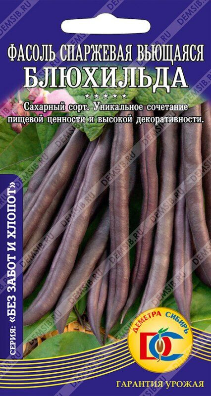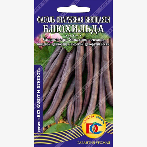 Раннеспелый (65-70 дней), высокоурожайный неприхотливый сорт вьющейся спаржевой фасоли, дающий отличные урожаи в любом регионе. Растение мощное (до 4 м), нуждается в опоре. Бобы сочные, мягкие, длиной 20-25см, шириной 10-15мм, плоско-округлые, фиолетового цвета, без пергаментного слоя и волокна, с белыми семенами. Вкусовые качества отличные. Прекрасный продукт для употребления в свежем виде, в домашней кулинарии, для консервирования и замораживания.