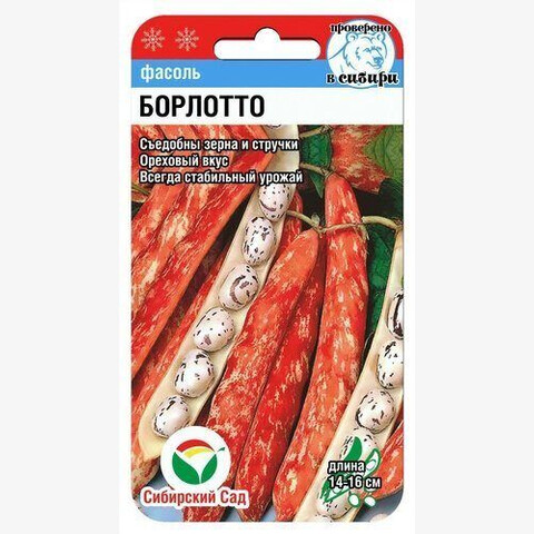 Съедобны зерна и стручки Ореховый вкус Всегда стабильный урожай Раннеспелый неприхотливый сорт спаржевой фасоли с крупными широкими стручками, которые можно собирать уже на 55–60 день после появления всходов. Куст высотой до 1м, бобы изогнутой формы, длиной 15–20см шириной до 1,9 см, светло – зеленого цвета с пятнами или штрихами красного цвета. Готов к уборке урожая уже на 55 – 60 день после появления всходов. В стадии технической зрелости бобы без пергаментного слоя и вместе с недозревшими зернами имеют необыкновенно привлекательный сладковатый вкус с ореховым оттенком. Полное созревание семян наступает на 80 день. Семена белые с красными разводами, по 5 -6 штук в стручке. Сорт неприхолив, устойчив ко многим вирусным и грибным заболеваниям, гарантирует достойный урожай и в дождливое и в засушливое лето .